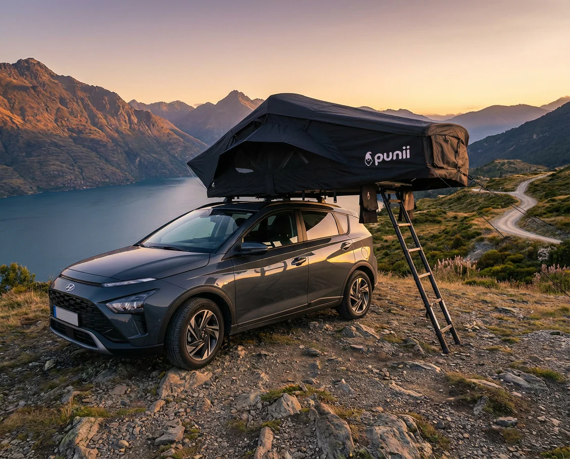 Ab in den Urlaub. Dachzelt aufklappen, Leiter raus, fertig. Bei Rückgabe kümmern wir uns um alles.
